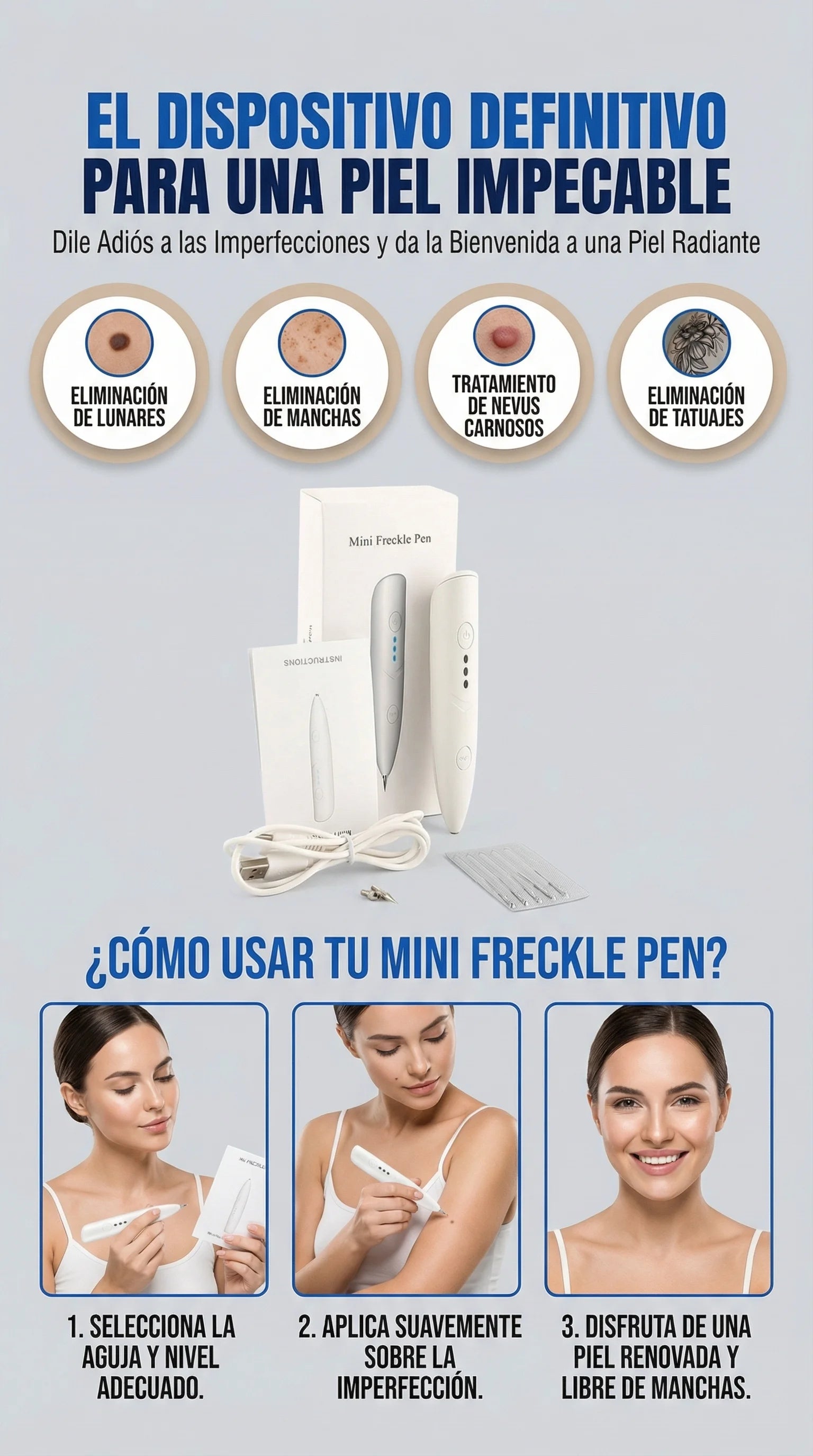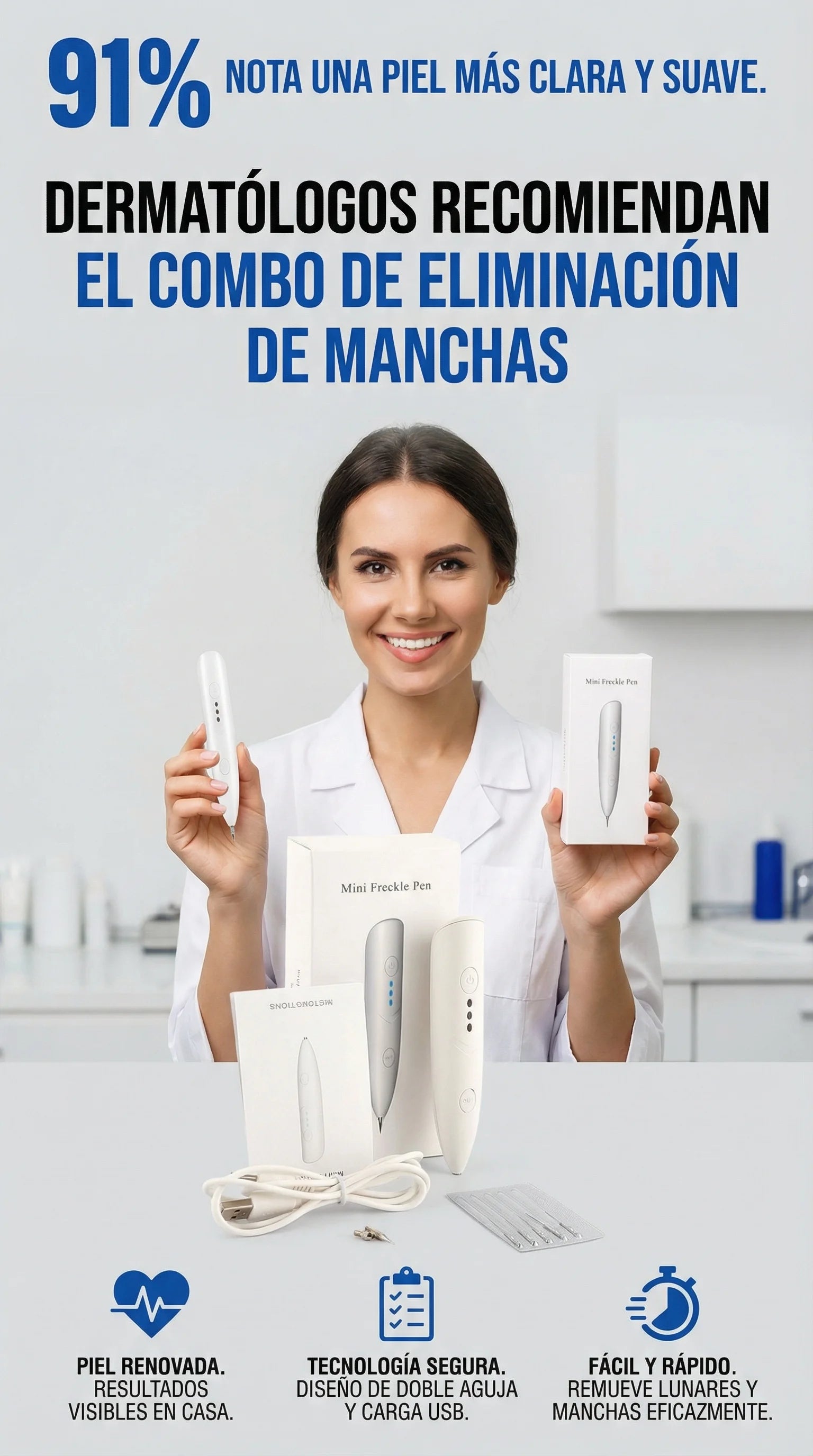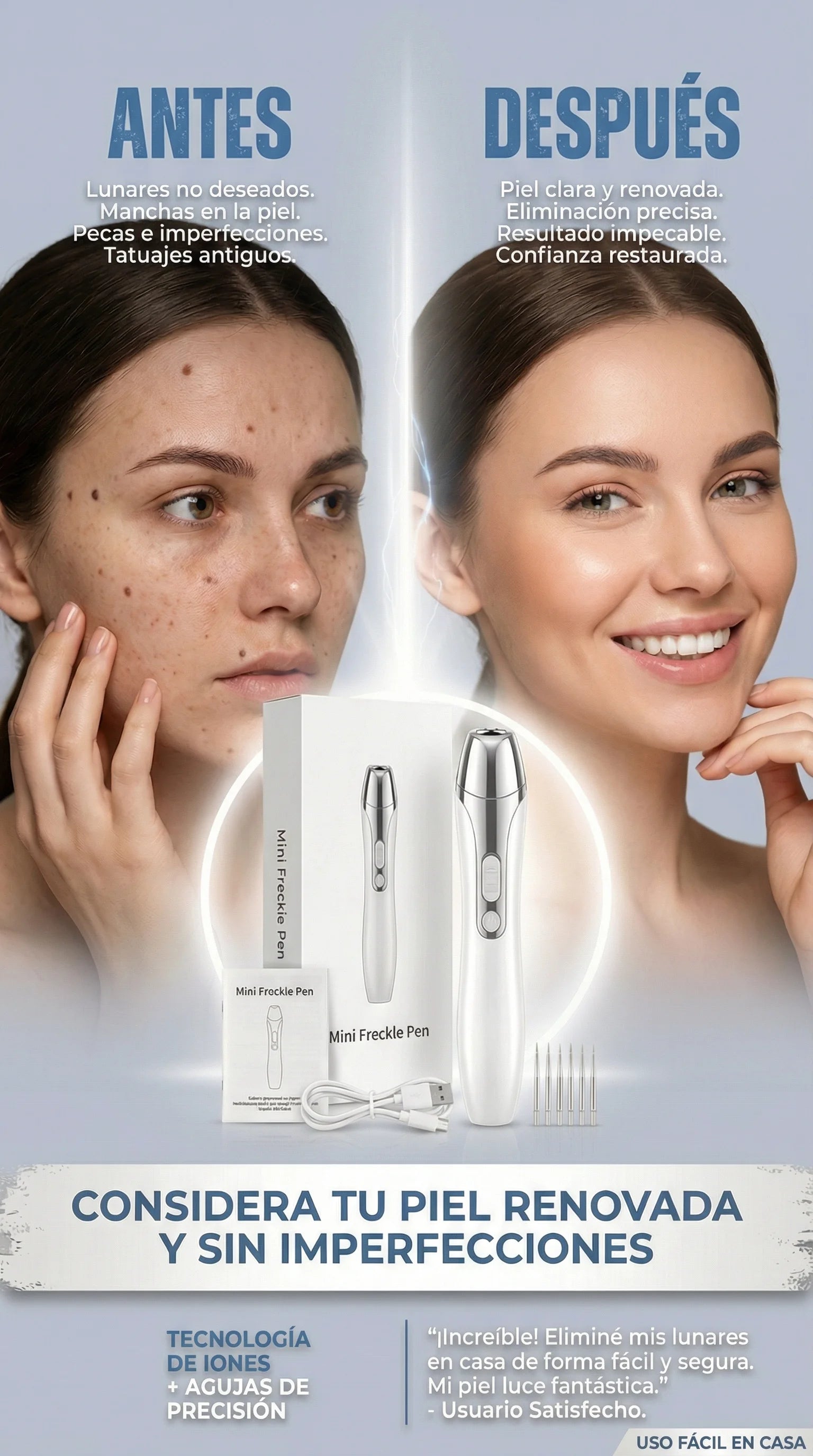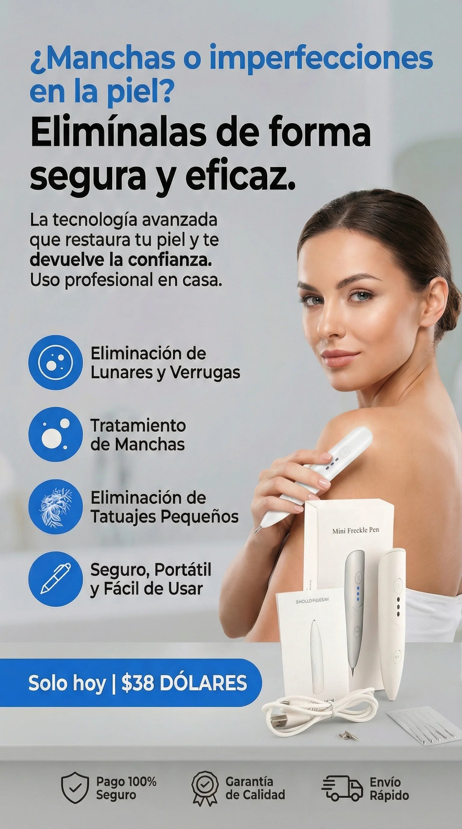 ⚠️ Salud y Cuidado: Como tu asistente de confianza, te sugiero siempre recordar a tus clientes consulta con un dermatólogo antes de eliminar lunares que cambian de forma o color. ¡La seguridad es lo primero! 🩺🧴✨ ¡Recupera la pureza de tu piel con tecnología de vanguardia! Práctico, efectivo y de alta precisión. ¡Pide el tuyo hoy! 🛒
